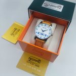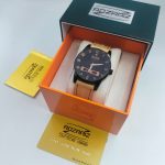 ساعة رجالية باسوار جلد مميز بتطريزه بشكل انيق وتحتوي على فص الماس بشهادة موثقة
