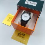 ساعة رجالية باسوار جلد مميز بتطريزه بشكل انيق وتحتوي على فص الماس بشهادة موثقة
